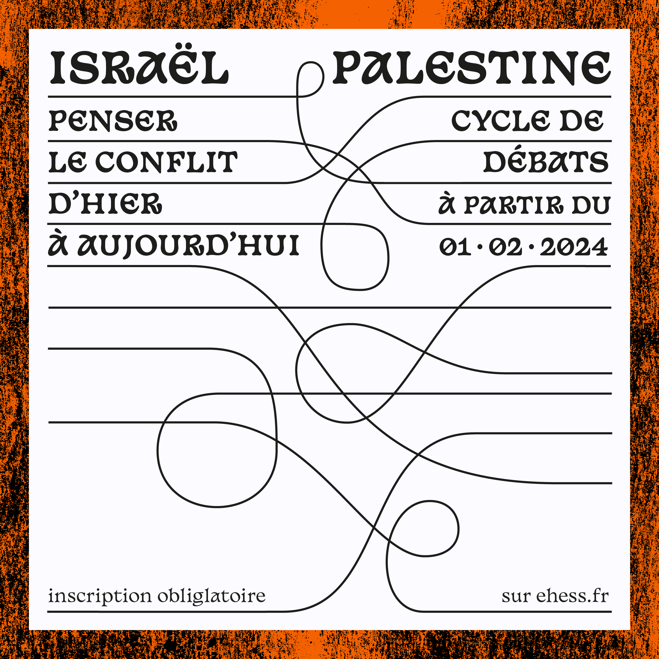 Israël-Palestine : penser le conflit d'hier à aujourd'hui Pour répondre à la demande d’information et de débat public au sein de l’EHESS, dans le monde académique et plus généralement dans la société, l’EHESS propose à travers ce cycle de débats un espace d’analyse et de réflexion offrant des perspectives de sciences sociales sur le passé et le présent d’Israël et de la Palestine.