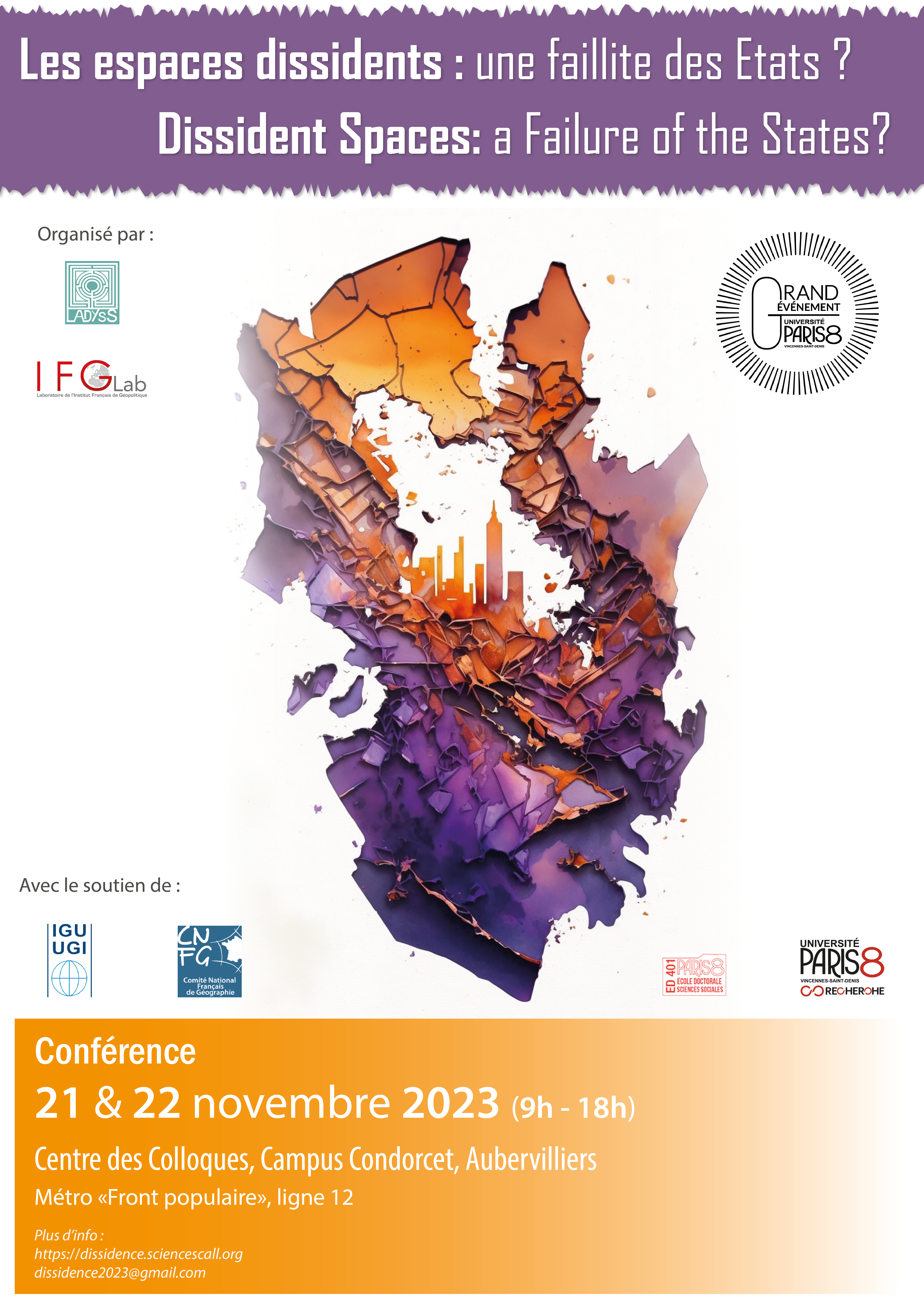 Cet événement est organisé par le Laboratoire Dynamiques Sociales et Recomposition des espaces (LADYSS) et l'IFG-Lab de l'Université Paris 8 Vincennes - Saint-Denis.